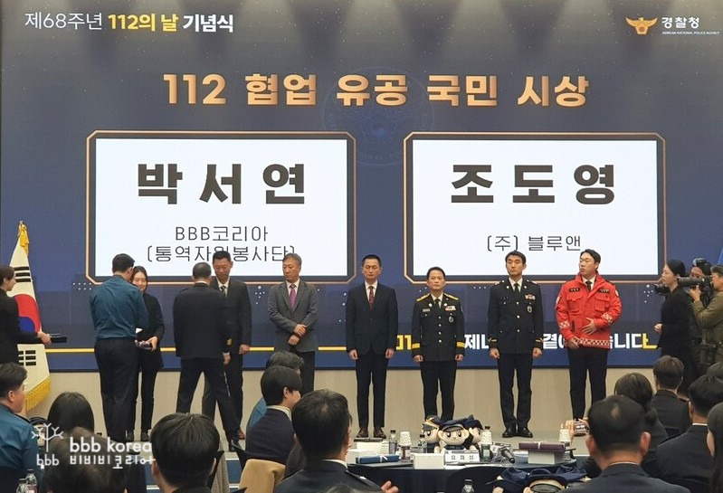 제68주년 ‘112의 날’ 경찰청 기념식에서 bbb 코리아 봉사자의 감사장 수상 소식을 전해드립니다.