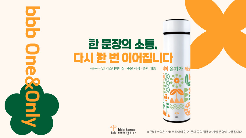 ※ 본 커스텀 텀블러 판매 수익은 언어·문화 공익 활동 및 bbb 코리아의 사업 운영에 사용됩니다.